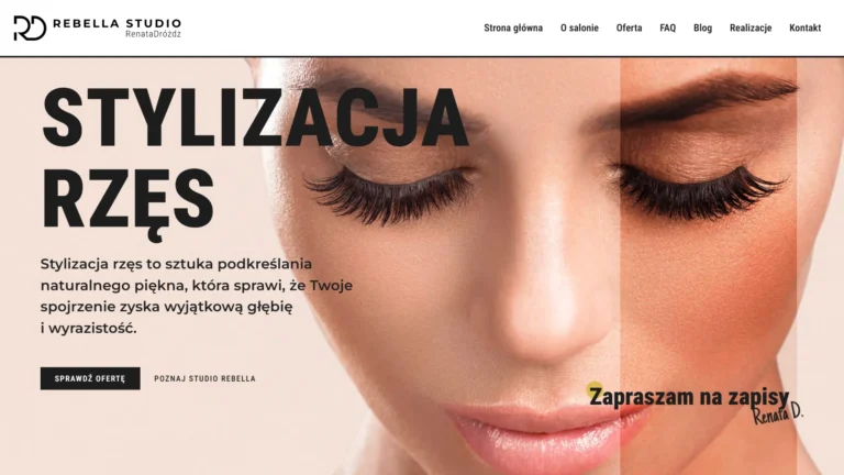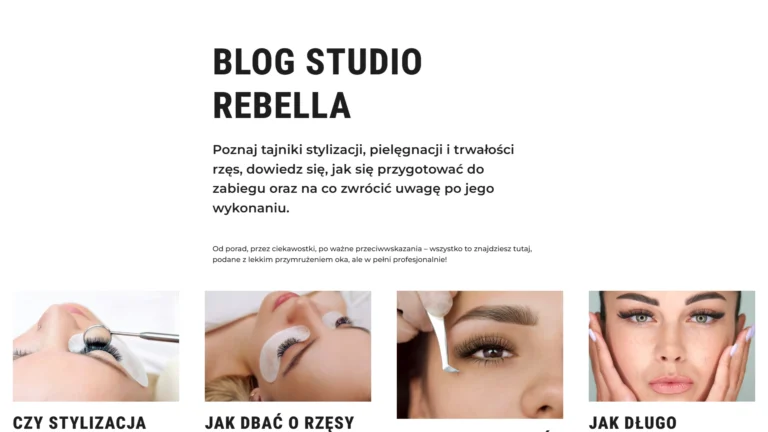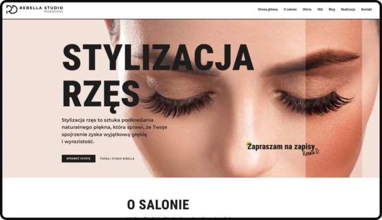 Projekt strony internetowej dla Rebella to połączenie elegancji i funkcjonalności, które podkreśla profesjonalizm marki i buduje jej wiarygodność w oczach klientek. W ramach realizacji stworzono przejrzysty i intuicyjny layout, dzięki czemu potencjalne klientki mogą szybko zapoznać się z ofertą i estetyką studia.
